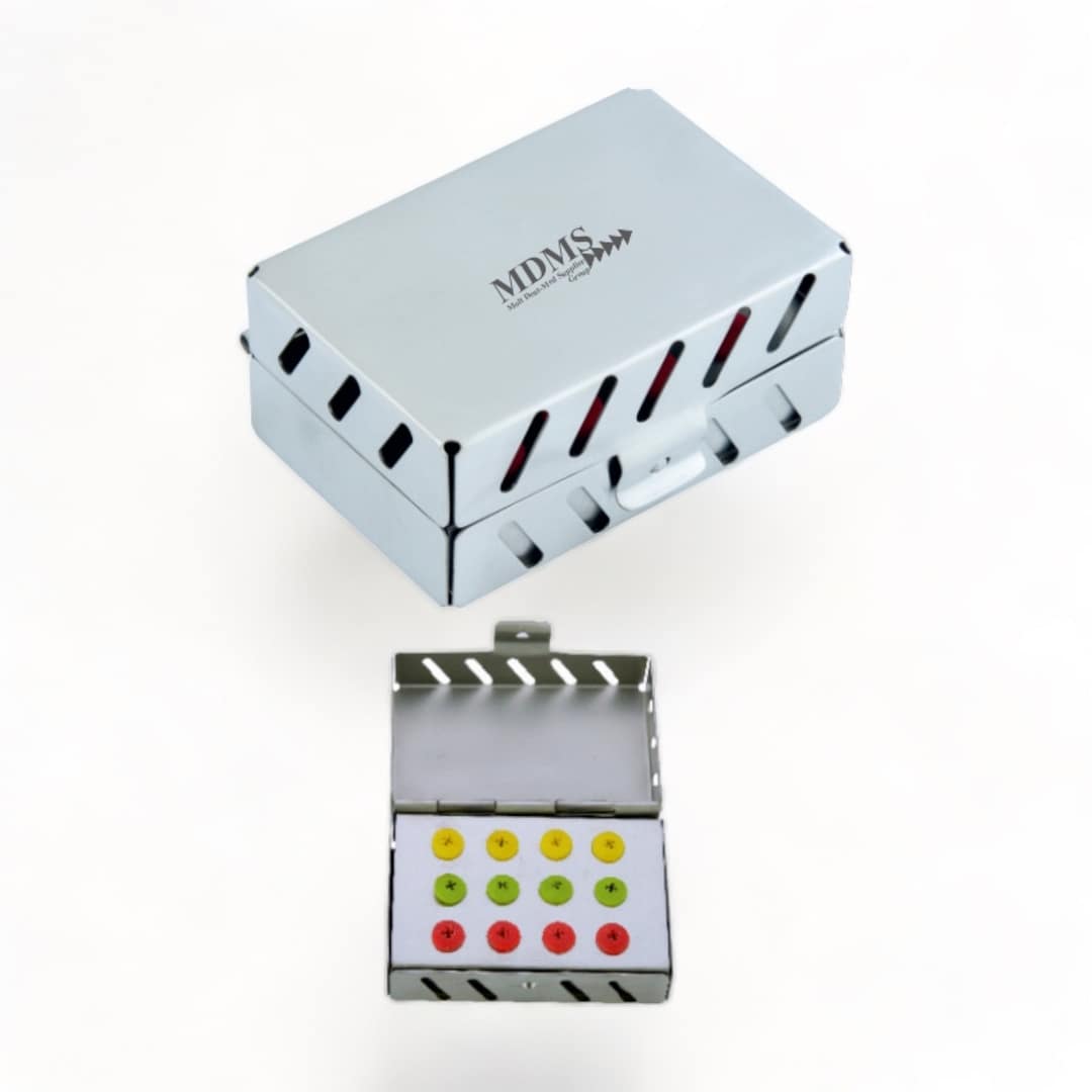 Lege cassette voor het overzichtelijk organiseren van mini-implantaatsets. Praktisch in dagelijks gebruik.