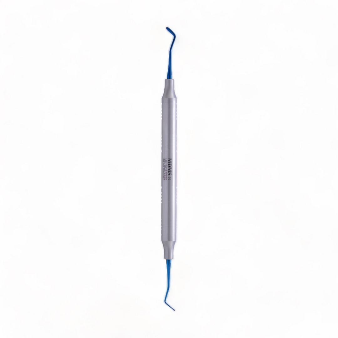 Fijn instrument voor slecht toegankelijke zones in het front. Ontworpen voor nauwkeurige correcties in kleine caviteiten.